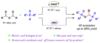 有機磷化合物不僅是維持生命體正常存在不可或缺的物質,而且在生物制藥、工農業生產、新材料等多個領域均有著廣泛的應用。但是,包括Michaelis–Arbuzov反應在內的傳統合成有機磷化合物的方法均存在反應效率低、反應條件苛刻、選擇性差等問題,己經不能滿足當代工業生產及科學研究的需要。因此,探索并發展高效、高選擇性、反應條件更為溫和的制備方法是現代有機磷化學研究領域的主要發展方向。