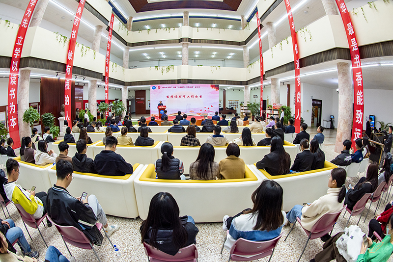 廿載書香飄,閱讀向未來。煙臺大學“山海毓秀·書香潤德”讀書節(jié)是煙臺大學最具傳統性和特色性的全民閱讀校園文化活動,自2003年舉辦以來已連續(xù)舉辦十九屆。今年,作為煙臺大學黨委學習貫徹習近平新時代中國特色社會主義思想主題教育的一項特色活動,本屆讀書節(jié)以“學習新思想、閱享新時代”為主題,旨在引導廣大師生深入學習習近平新時代中國特色社會主義思想,固本培元、凝心鑄魂,積極培育和踐行社會主義核心價值觀,進一步加強學風建設,不斷豐富校園文化生活,強化“書香校園”建設,引領廣大師生愛讀書、讀好書、善讀書,讓閱讀成為增強歷史自覺和文化自信的精神動力。該活動按照傳統在4月23日“世界讀書日”開幕,并持續(xù)至六月份。
