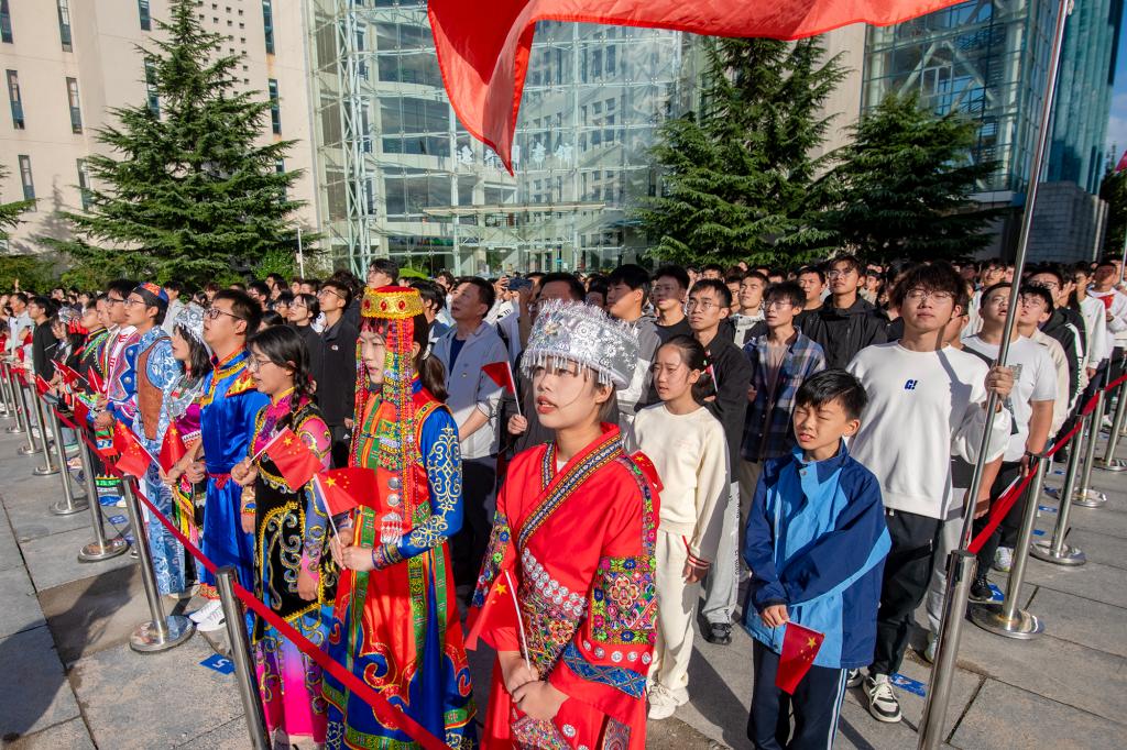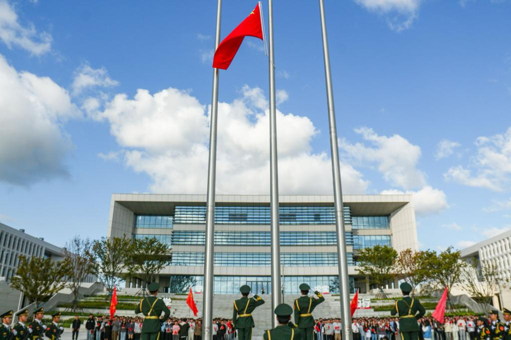 【本站訊】為慶祝中華人民共和國成立75周年、煙臺大學建校40周年,加強新時代愛國主義教育,激勵和引導廣大師生大力弘揚以愛國主義為核心的偉大民族精神。10月1日,煙臺大學在主校區和八角灣校區國旗廣場同步舉行“青春獻禮迎華誕 四秩同慶譜新章”主題升旗儀式,學校領導班子成員和黨委常委、教職工代表、學生代表3000余人參加儀式。