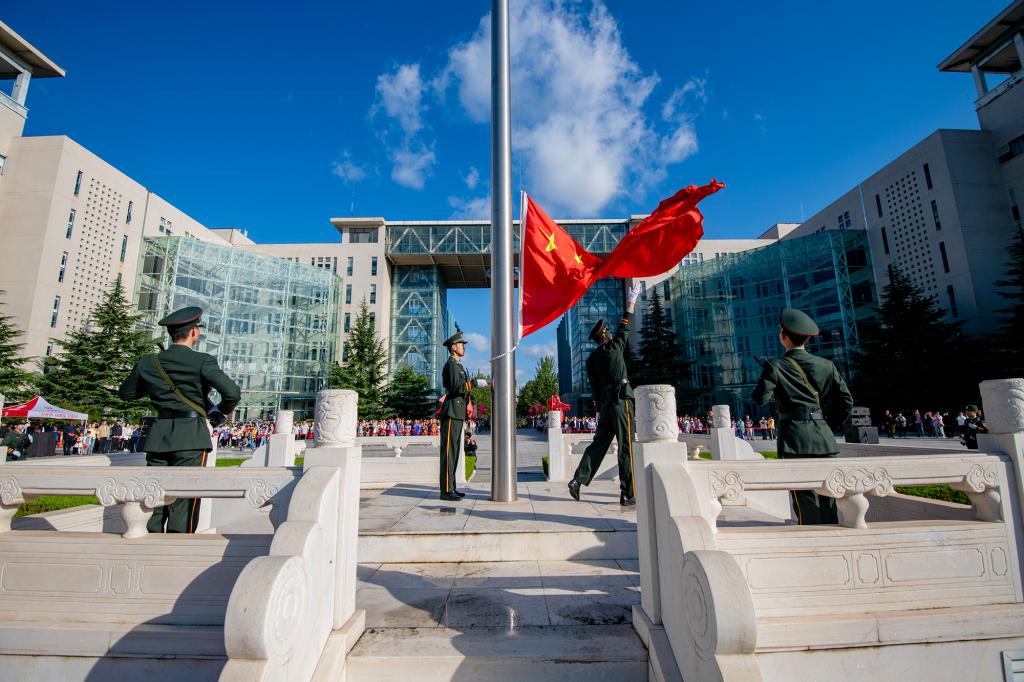 煙臺大學舉行“青春獻禮迎華誕 四秩同慶譜新章”主題升旗儀式