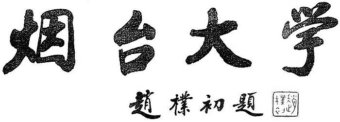 1991年10月,時任煙臺大學校長的李慶臻邀請他曾在山東大學工作期間的好友,即當代著名文字語言學家、書法篆刻家、山東大學教授蔣維崧來煙臺一游。蔣教授對煙臺大學圖書館和校園環(huán)境贊不絕口,李校長便乘興請蔣教授為煙臺大學題寫校名。好友求字,當然沒得說。來年春,人事處徐煥波老師就帶著李校長的信去了山大南門外教職工住宅區(qū)的蔣教授家。徐煥波回憶說,一進蔣家門,滿地都是用麻袋裝著的宣紙,一見便知這是一個大書法家的住宅。看了李校長的信,蔣教授說,我和李校長是好朋友,兩天后你來取字吧。徐兩天后如約前往,蔣維崧取出一張書寫有“煙臺大學”約莫有四指寬的紙條,交予徐煥波。徐攜此字條趕往山東大學出版社印刷廠,完成交付、放大、制版、排印等工作后,就把該題字作為1992年學校宣傳冊的封面用字。