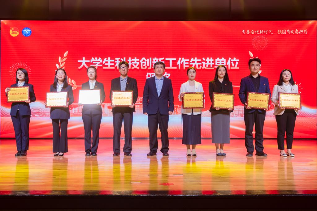 表彰大會上,學校領導為優秀共青團干部、優秀共青團員、十佳紅旗團支部、十佳社團、大學生科技創新工作先進單位和紅旗團委頒獎。