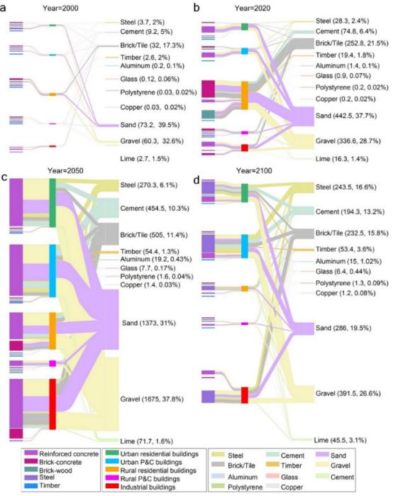 隨著人口增長、經濟發展及城市化進程的加速,中國建筑面積快速增長。然而,“短命建筑”的大規模拆除導致城市代謝速率持續增高,同時引發了建筑拆除垃圾無序收運、偷倒亂堆等一系列問題,對生態環境及居民健康造成了嚴重的負面影響。然而,由于中國建筑建造與拆除廢棄物(CDW)資源化利用處于發展初期,且缺乏與建筑廢棄物產生量相關的統計數據,特別是CDW來源、材料構成、產生環節及其產生量等尚不明確,這造成了中國CDW處置及利用難以進行規模化部署。為了提高CDW治理水平,進一步推進CDW資源化利用,亟需開展針對CDW長時期、多組分的精準預測及追蹤,明確各類材料的來源及再利用潛力。